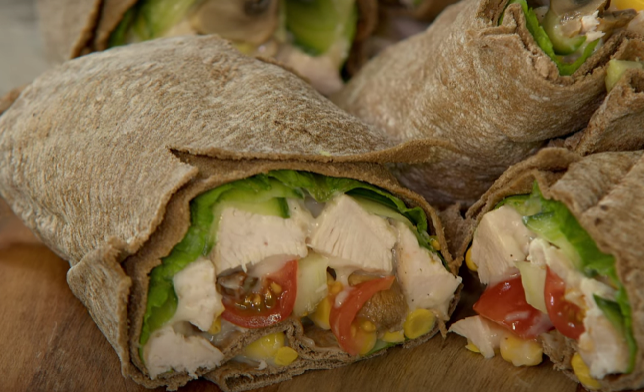 - Διπλώνουμε πρώτα τις πλευρές προς τα μέσα και στη συνέχεια τυλίγουμε σε ρολό, ώστε να δημιουργήσουμε τα wraps.